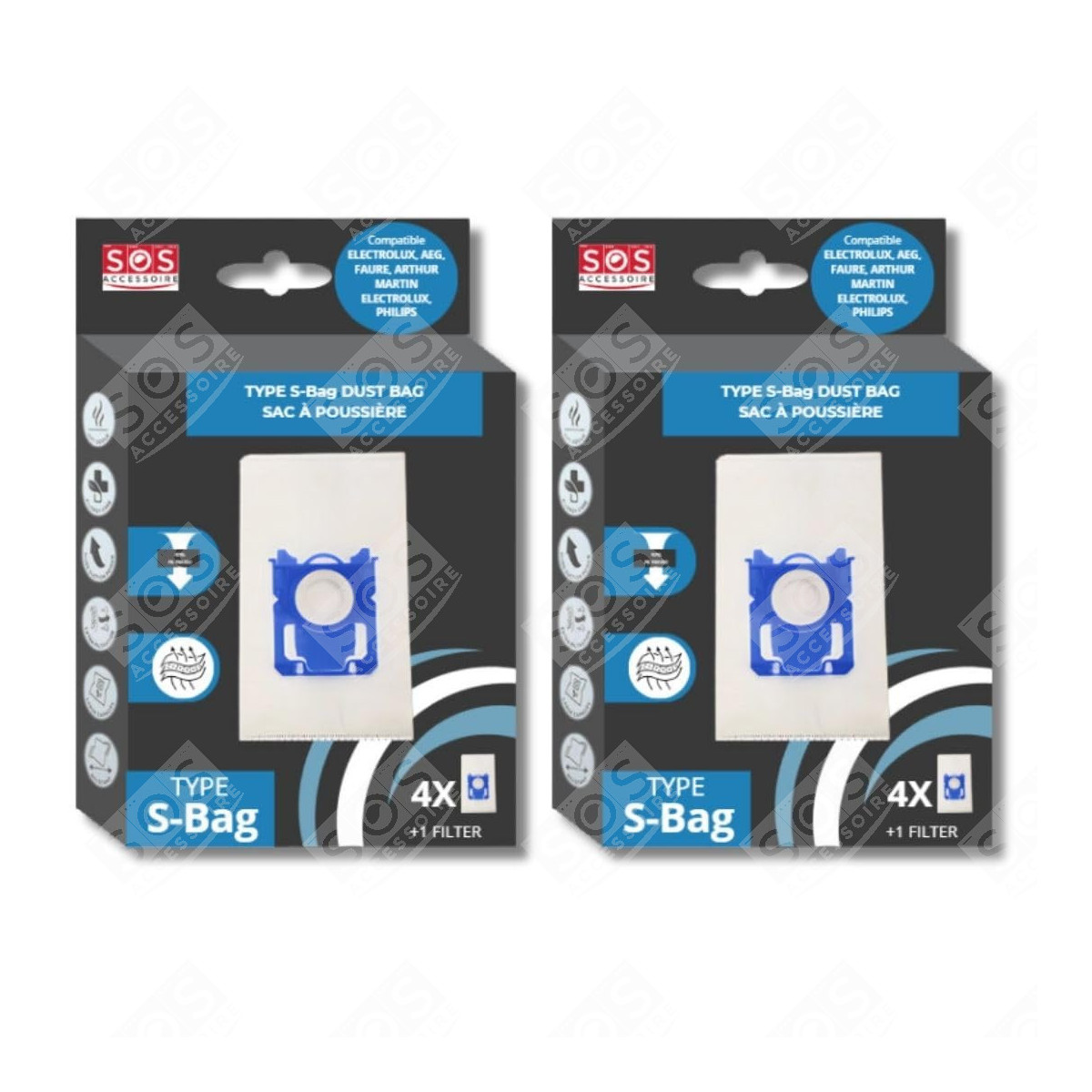 Set von 2 Boxen mit 4 S-BAG Typ Beuteln, kompatibel mit Staubsaugern von ELECTROLUX, AEG, FAURE, ARTHUR MARTIN ELECTROLUX, PHILIPS
