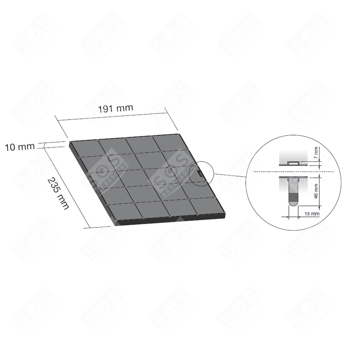 Filtre à charbon 235X190X10 mm pour hotte ELECTROLUX - Référence 33005521Ce filtre à charbon, est idéal pour les hottes à recyclage ELECTROLUX fonctionnant en circuit fermé. Vendu à l’unité, il est conçu pour un filtrage optimal des mauvaises odeurs grâce à son charbon actif de haute qualité. Son format rectangulaire de 235X190X10 mm permet une fixation facile et rapide, garantissant une installation sans effort. Pour maintenir une efficacité maximale de votre hotte de cuisine, nous conseillons de remplacer ce filtre tous les 3 à 6 mois, en fonction de la fréquence d’utilisation. Optez pour ce filtre à charbon d’origine pour prolonger la durée de vie de votre hotte et profiter d’un air toujours frais et pur dans votre cuisine.