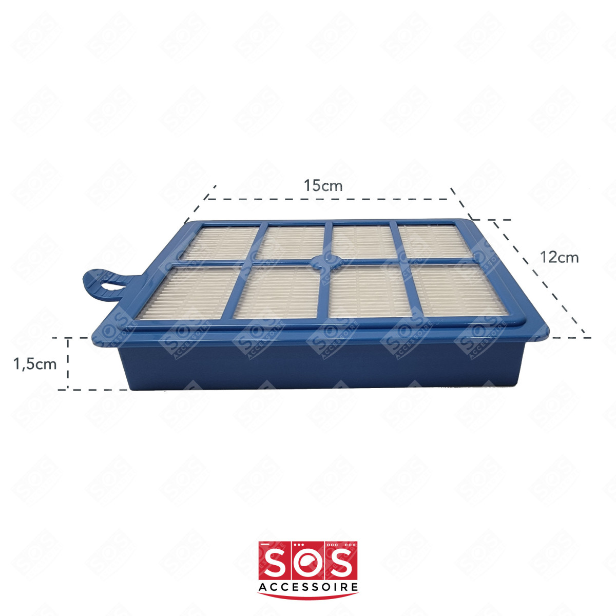 Filtre HEPA H12 compatible pour aspirateur ELECTROLUX, TORNADO, PHILIPS, ESSENTIEL B, AEG Il retient plus de 99,5% des particules jusqu'à 0,15 microns : poussières, acariens, spores, pollens, bactéries ...Lavable à l'eau tiède tous les 5 sacs.Dimensions : 150x120x25 mm